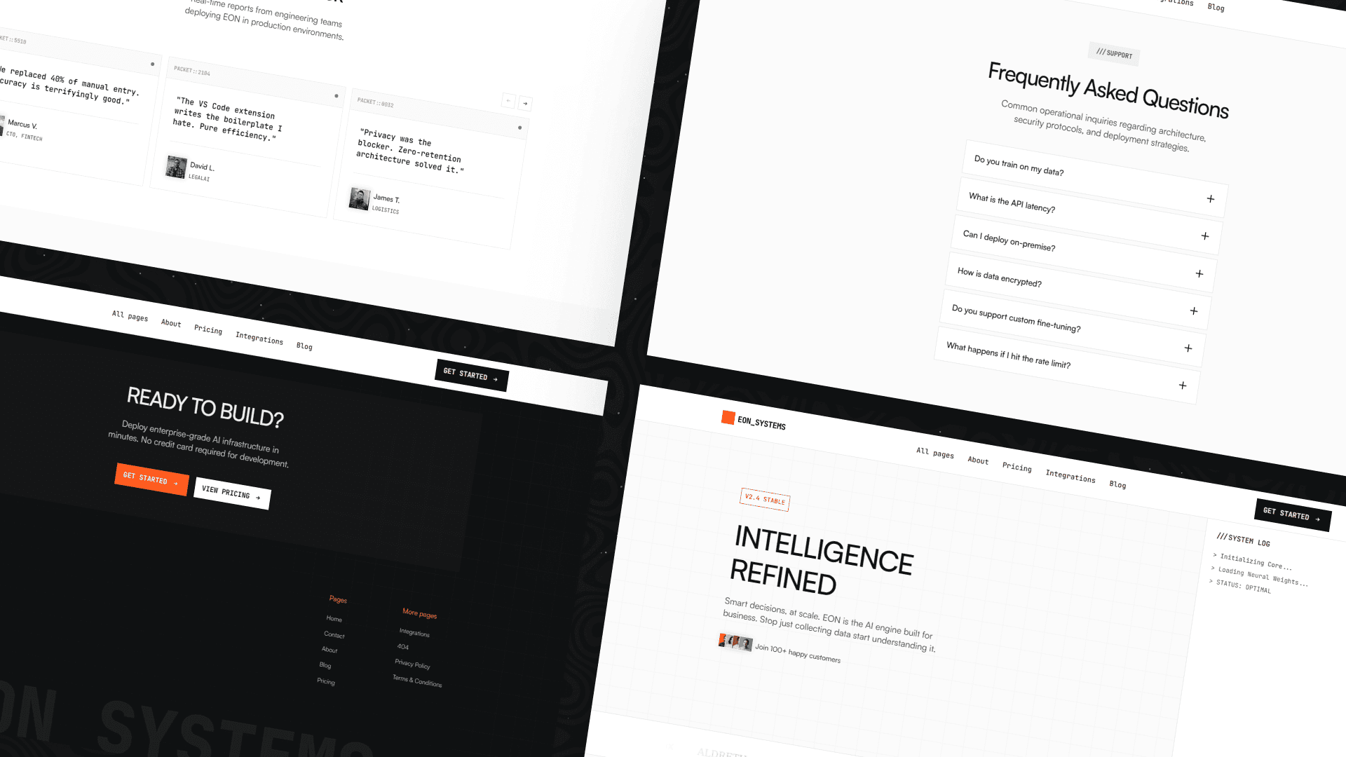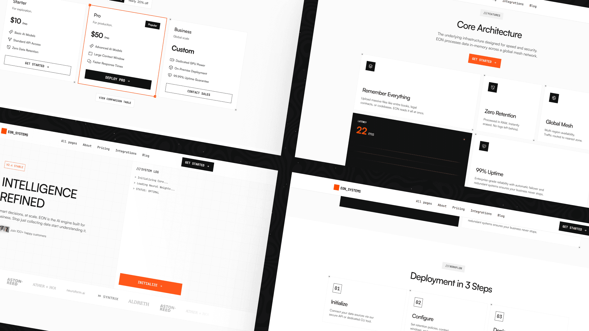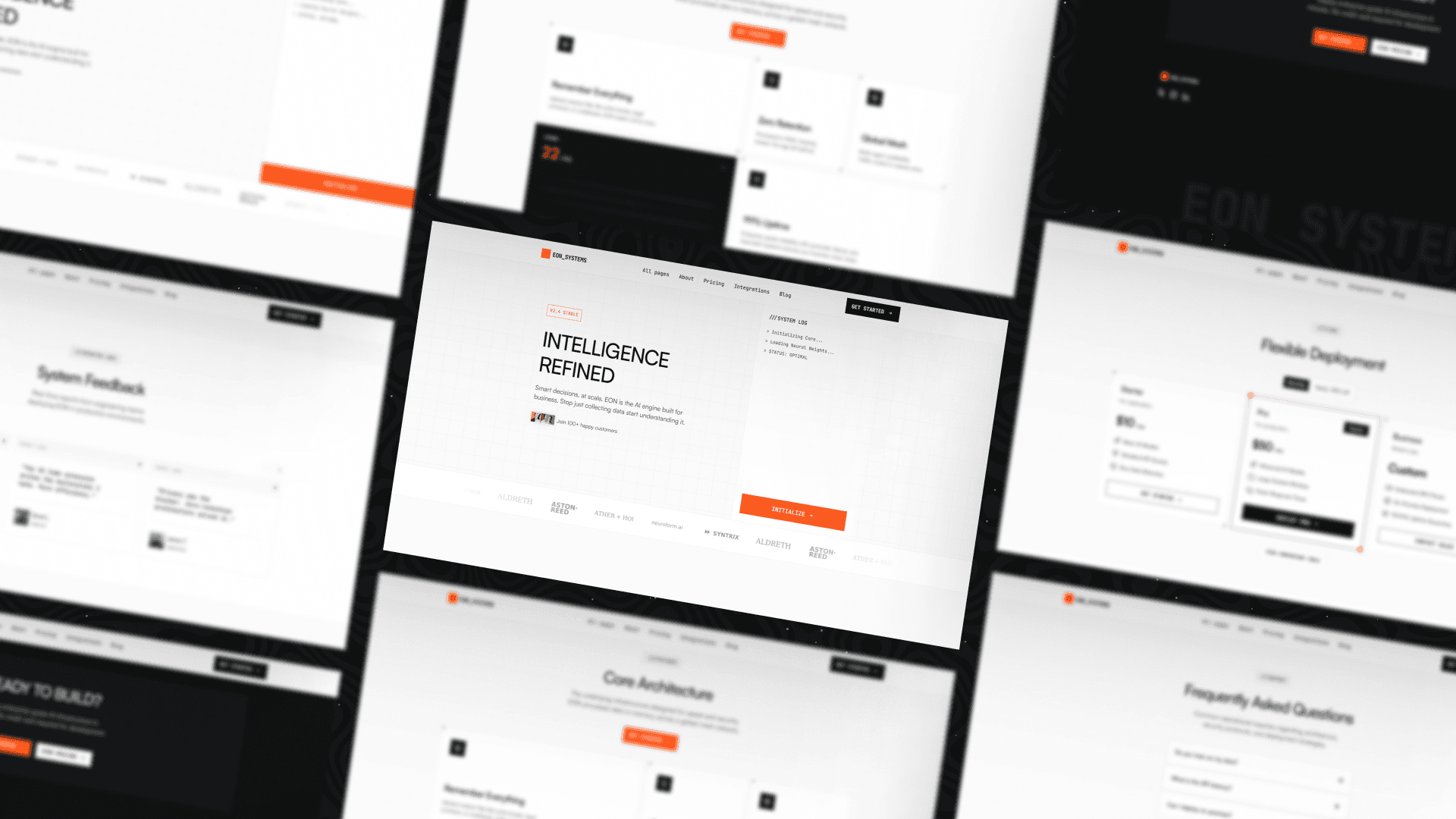 Built around sharp typography, structured grids, and bright orange accents like #FF6600, EON delivers a futuristic aesthetic without sacrificing clarity. It feels engineered, confident, and performance-driven — perfect for brands operating in fast-moving tech environments.