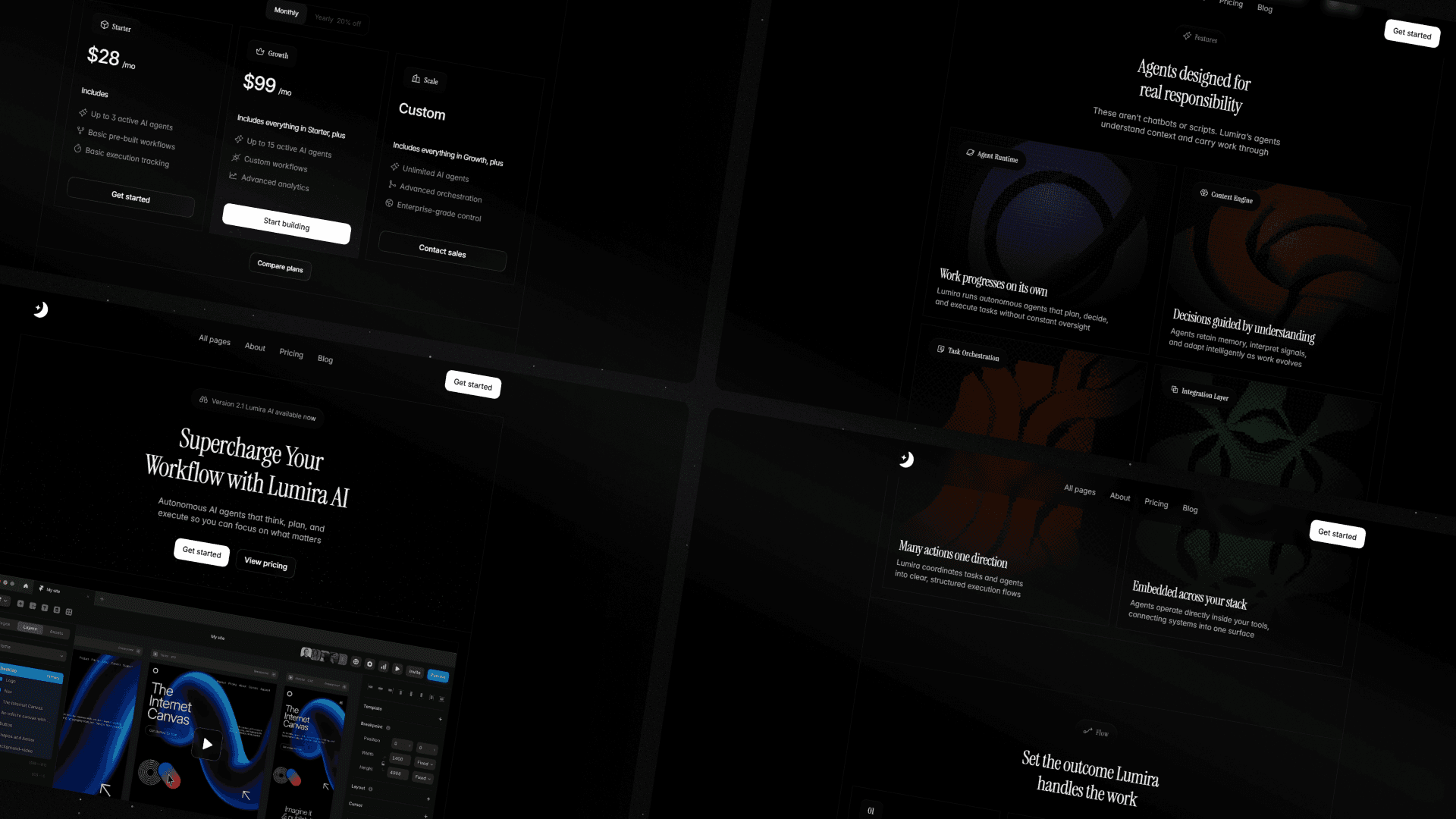 Built on a deep #1A1A1A foundation with high-contrast white typography, Lumira communicates authority, precision, and long-term stability. It avoids visual noise and trend-driven effects in favor of structured hierarchy, refined typography, and deliberate restraint.