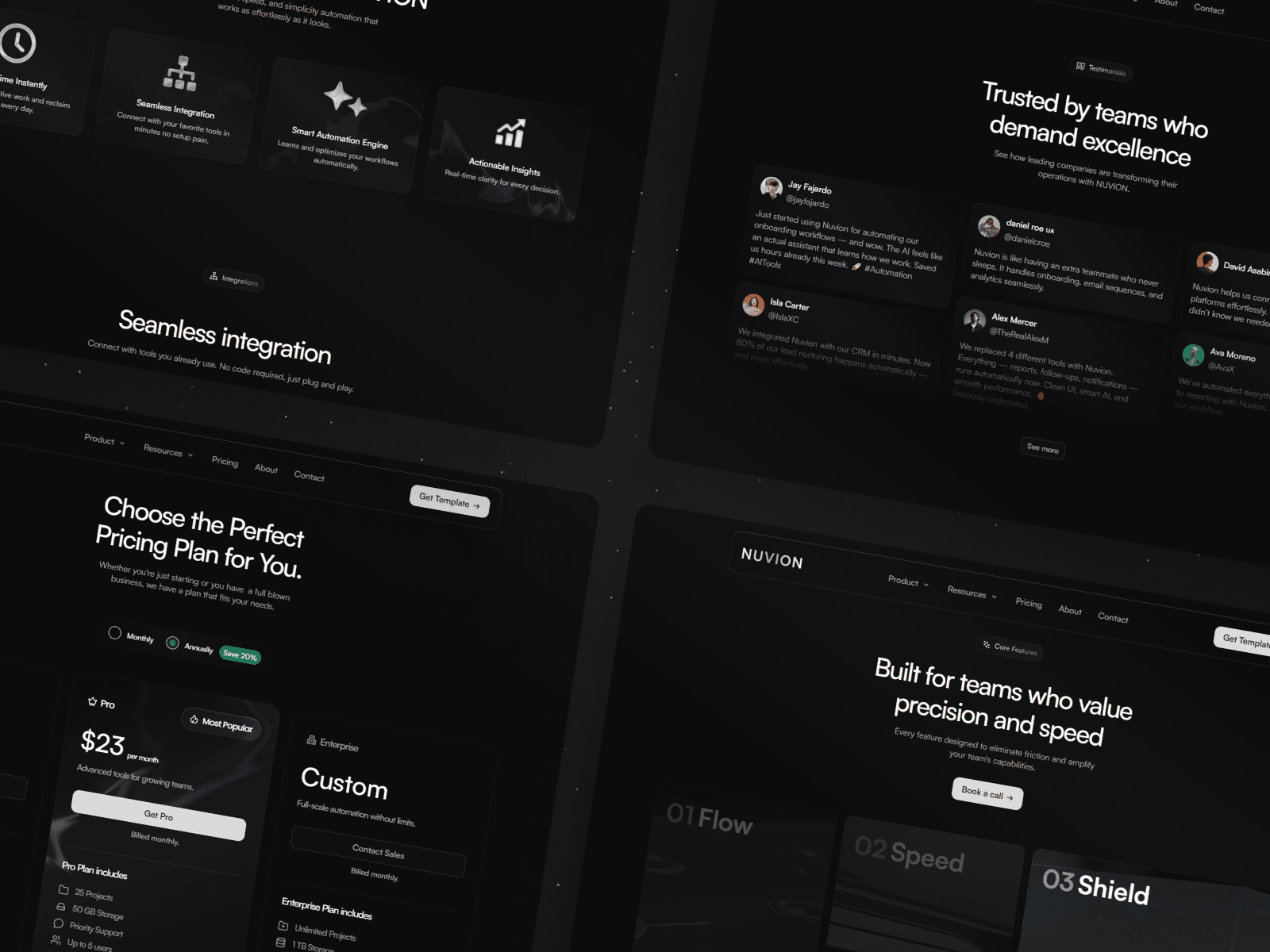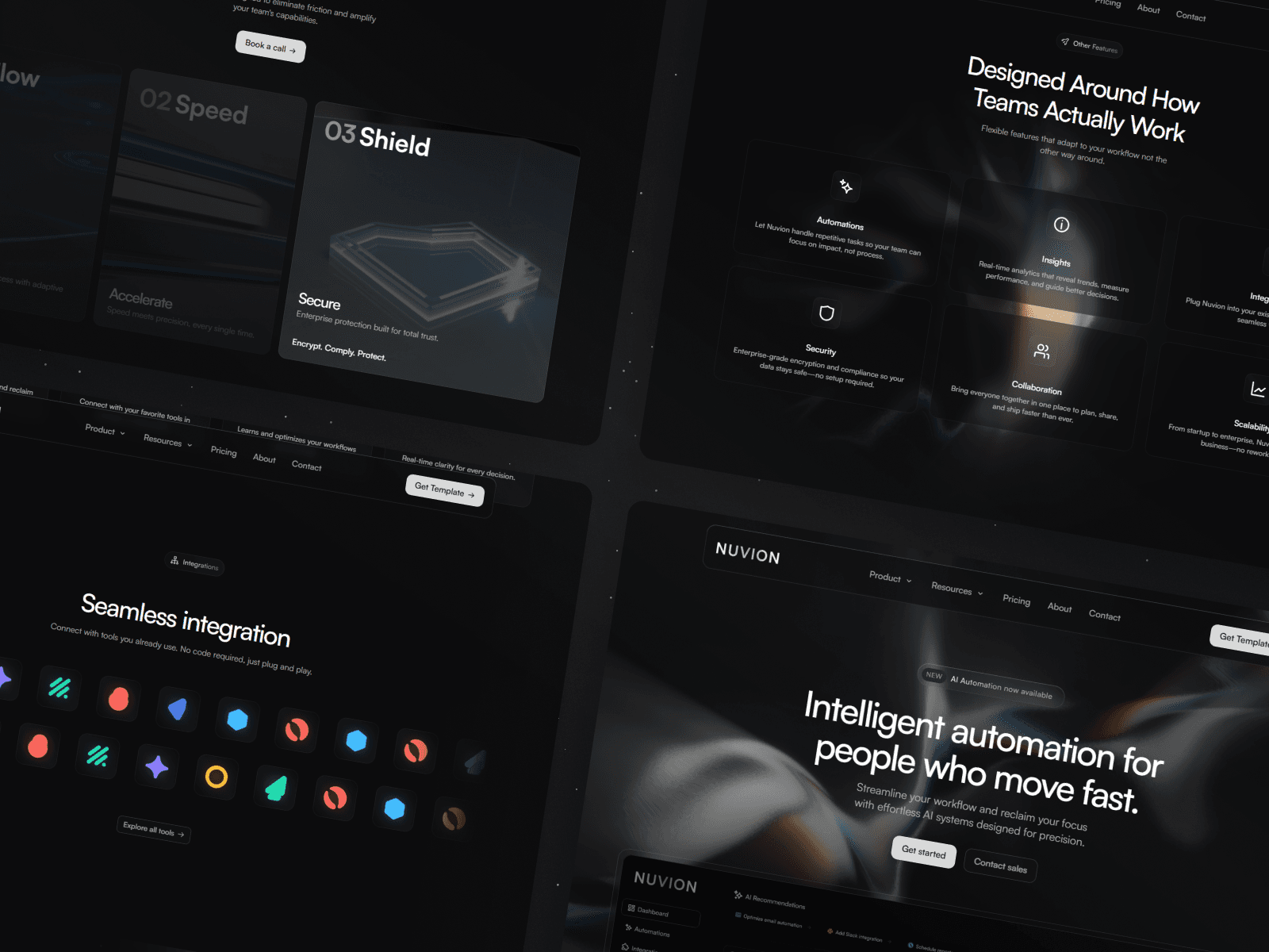 Nuvion is a sleek, conversion-focused Framer template made for teams who move fast. With a dark, glassmorphic design and intelligent layout system.